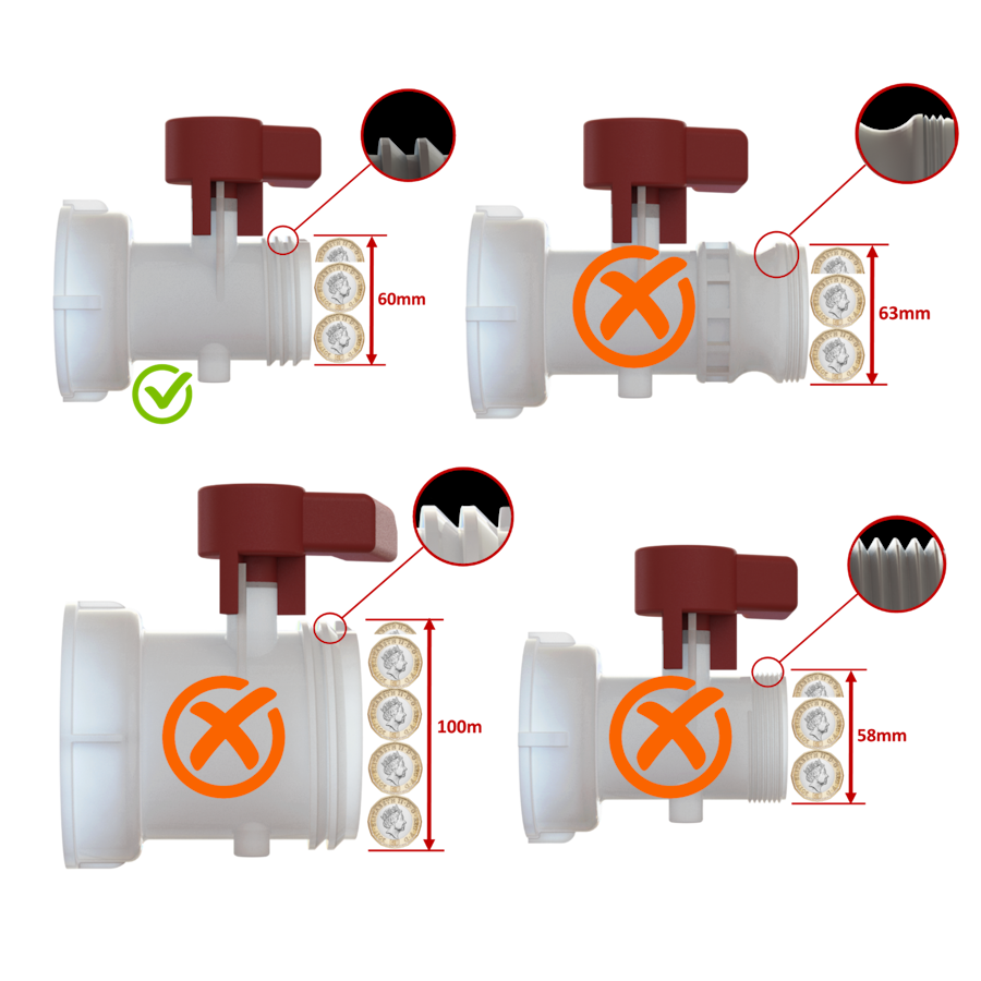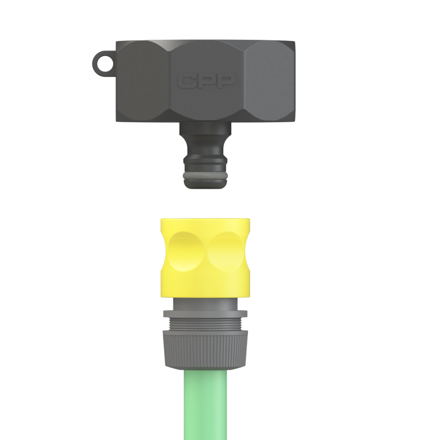 12.5mm (½”) Hozelock (type) adapter x S60X6 female, C/W seals, G/P/P, connects 1000L IBC tank to a garden hosepipe push fitting connector