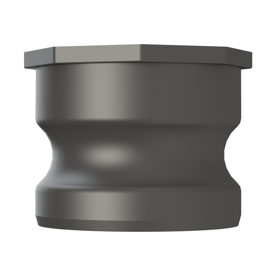 IBC tank valve adaptor, 2’’ Part ‘A’, 2’’ short Camlock male adaptor. The other side of the adaptor is a S60X6 (2’’) female buttress thread with gasket seal and internal dust plug, the plug must be removed when you empty the IBC tote (tank), material is food grade polypropylene, natural white.