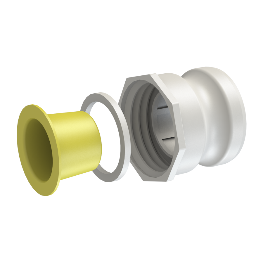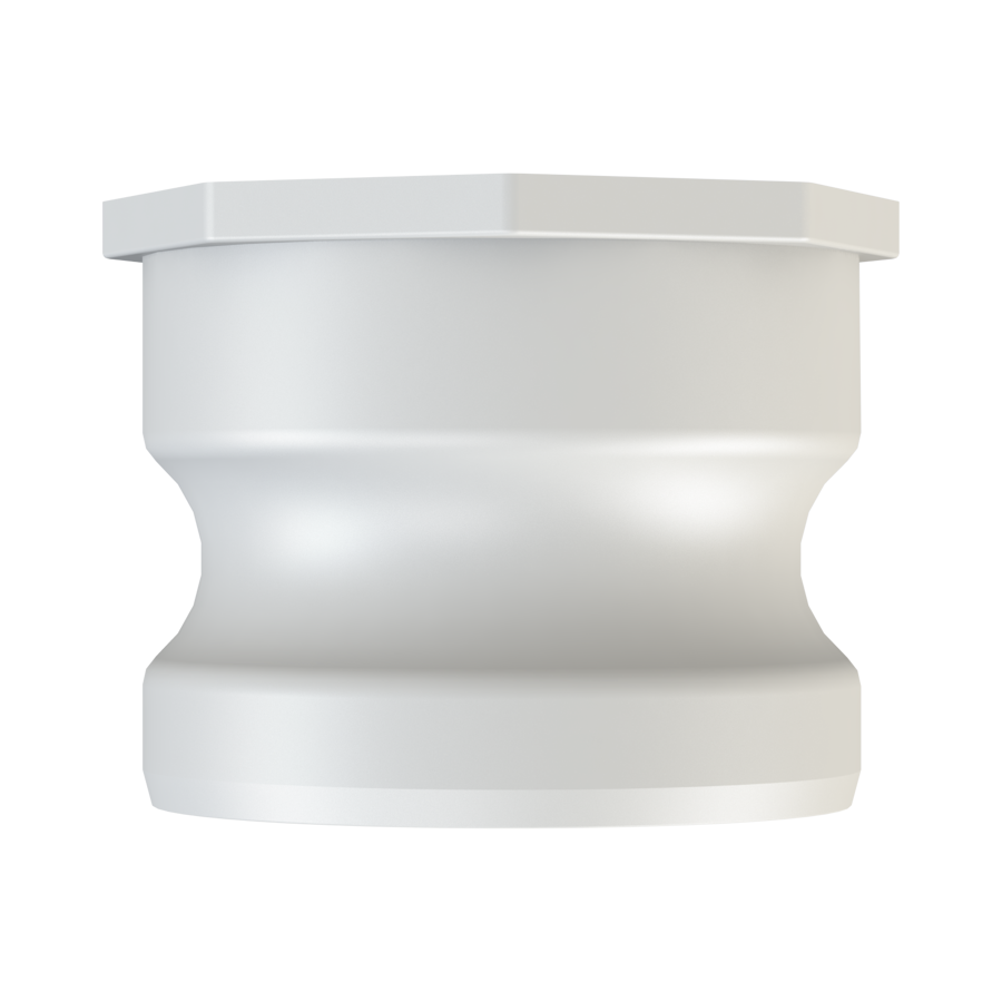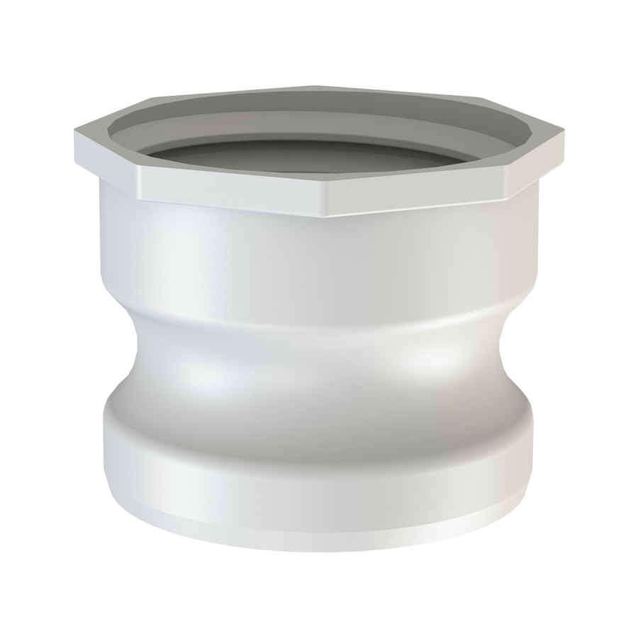 IBC tank valve adaptor, 2’’ Part ‘A’, 2’’ short Camlock male adaptor. The other side of the adaptor is a S60X6 (2’’) female buttress thread with gasket seal and internal dust plug, the plug must be removed when you empty the IBC tote (tank), material is food grade polypropylene, natural white.