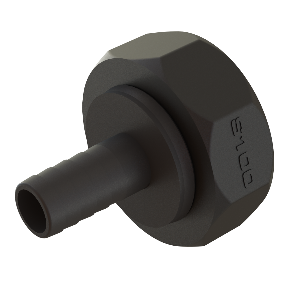 S100X8 female buttress C/W seal X 1 ¼” (32mm) hose tail, G/P/P