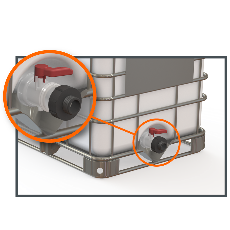 S100X8 (3'' or DN 80) female buttress with seal to IBC S60X6 thread , connects 1000L IBC tank to a IBC S60X6 (2" or DN 50) male buttress thread